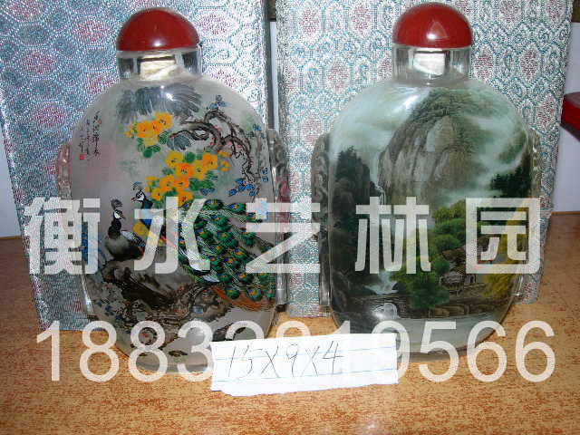 内画是中国特有的一种艺术形式,艺术家们以玻璃、水晶料为壶坯,用特制的变形细笔,在口小如豆的瓶内反手内绘精妙入微的画面,作画时,气收于丹田之中,力发于手腕之上,精细之处非目力所能及,可谓鬼斧神工,所以被誉为奇特的、瑰丽的、富有收藏价值的艺术珍品。